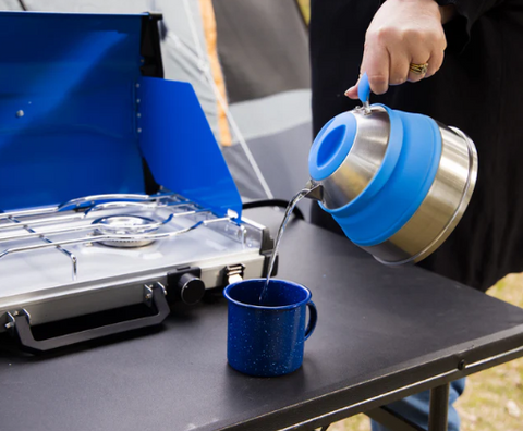 This 2L pop-up kettle is perfect for camping or home use. Made from food-grade silicone with a 304 stainless steel frame, it collapses easily for compact storage and can be placed directly on heat sources - now also induction compatible for even more versatility.